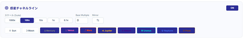 モジュール有効化: 「惑星チャネルライン」右横のボタンでON/OFFを切り替えます。