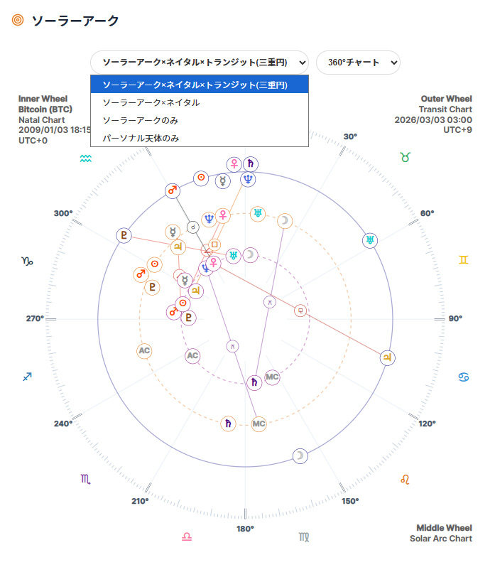 • ソーラーアーク×ネイタル×トランジット(三重円)