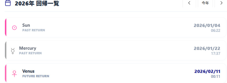 惑星リターンは、「同じ惑星周期=同じテーマが再活性化する」という時間哲学に基づきます。